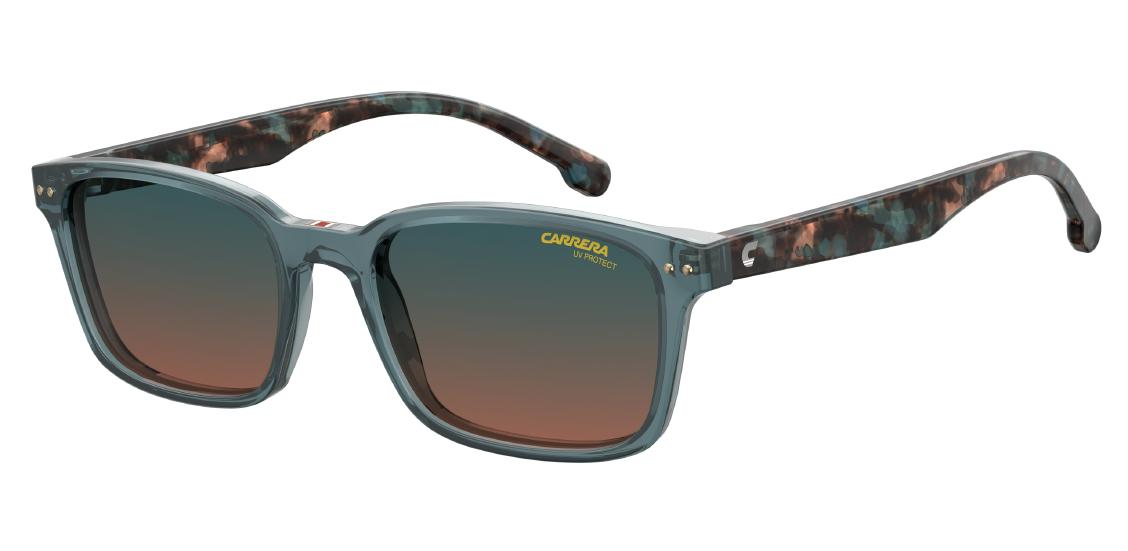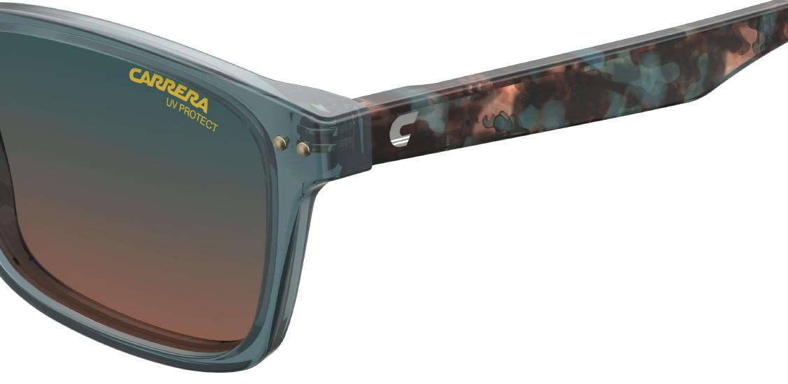 La couleur bleu transparent de la monture apporte une touche tendance et dynamique, parfaitement complétée par des branches en acétate vert et orange, pour un look sportif et audacieux fidèle à l’ADN de la marque CARRERA.